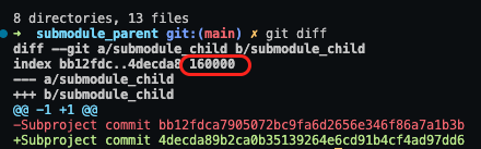 - git 상태를 보면 submodule_parent는 submodule_child의 commit hash만 추적하고 있다.